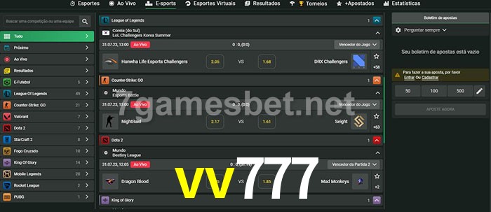 A aposta vv777 oferece aos jogadores a experiência mais conveniente de apostas em eSports!